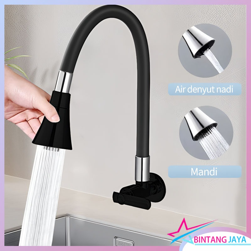 SUS304 Kran Angsa Fleksibel Kran Cuci Piring Hitam Kran Cuci Piring Dinding Anti Karat