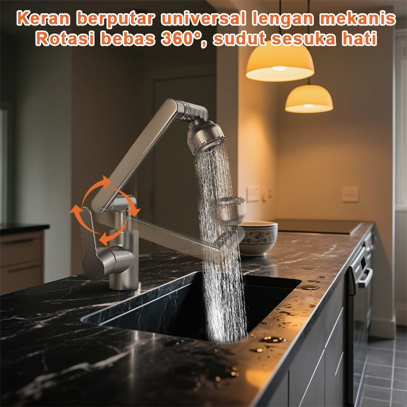 Kran Putar 360° SUS304 - Keran Air Panas & Dingin Dual Mode, Cocok untuk Wastafel Dapur & Cuci Piring