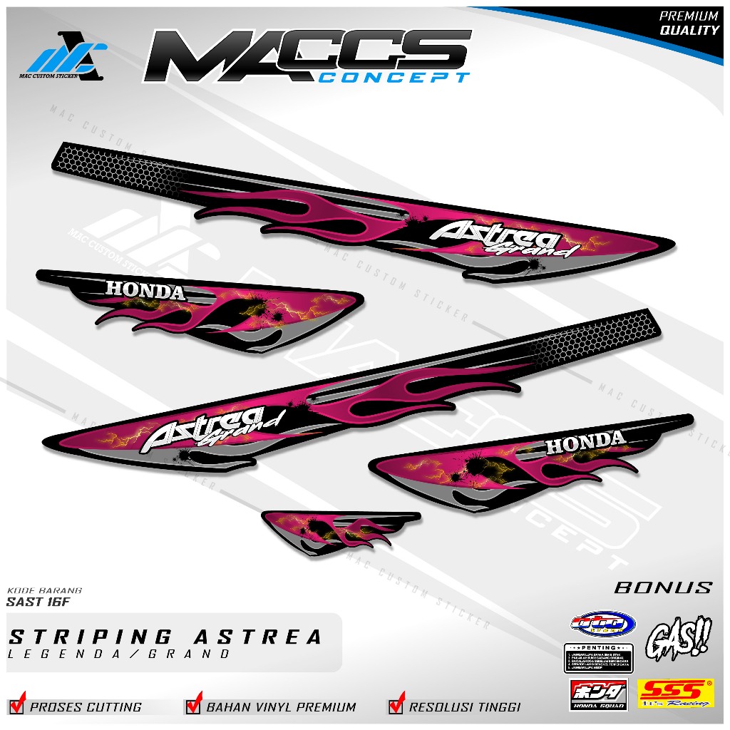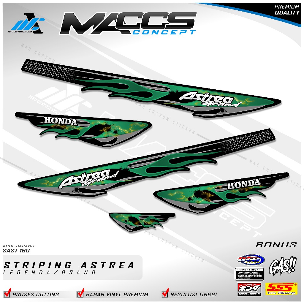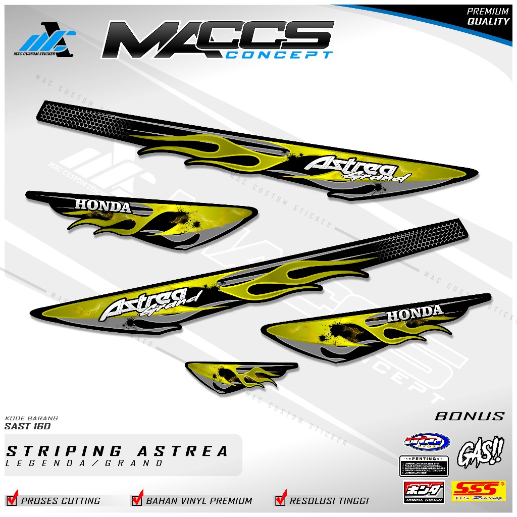 Striping Variasi Honda Astrea Grand Stiker Motor Star Premium el FLAME - SAST 16
