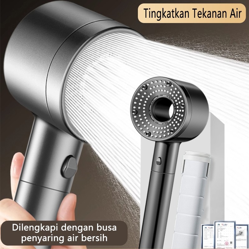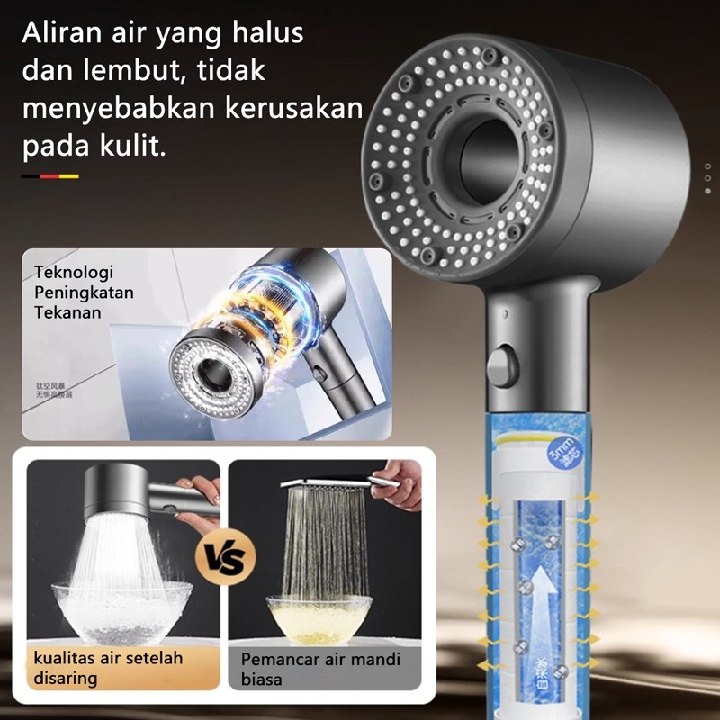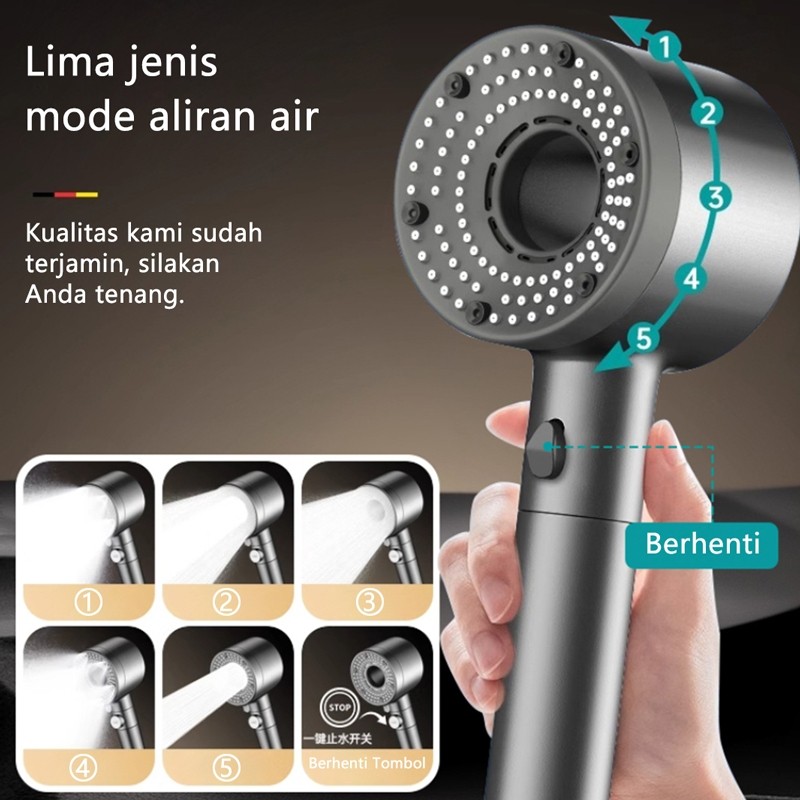Shower Set 3in1 Kepala Shower Hitam Premium 5 Mode Adjustable + Selang Portable Kamar Mandi