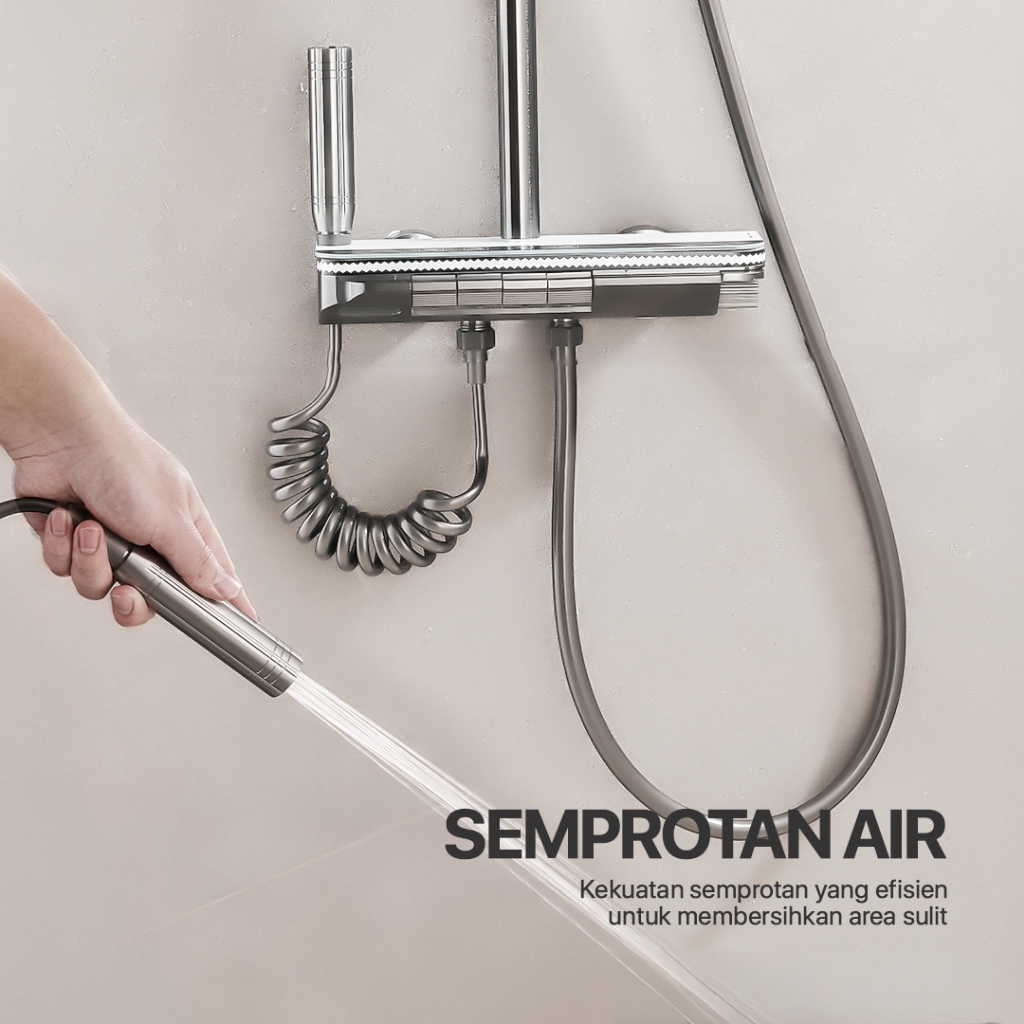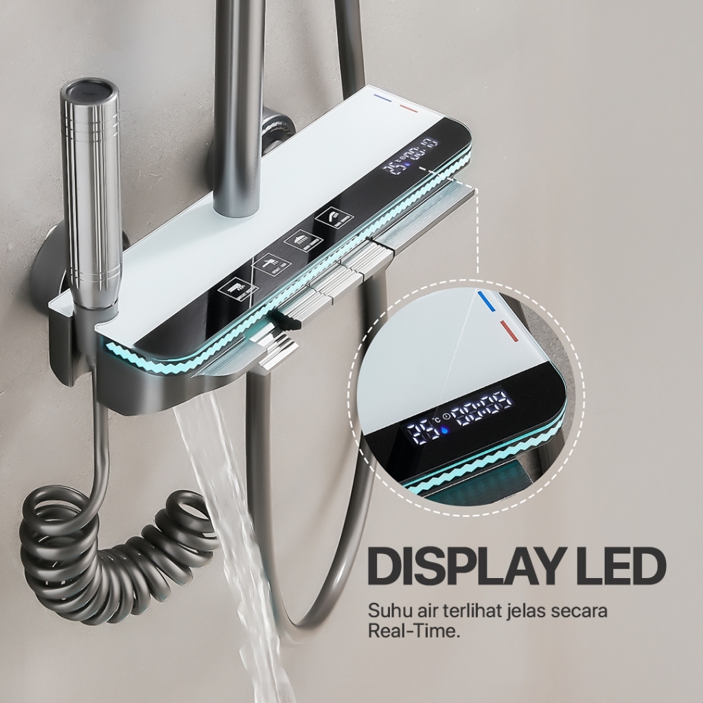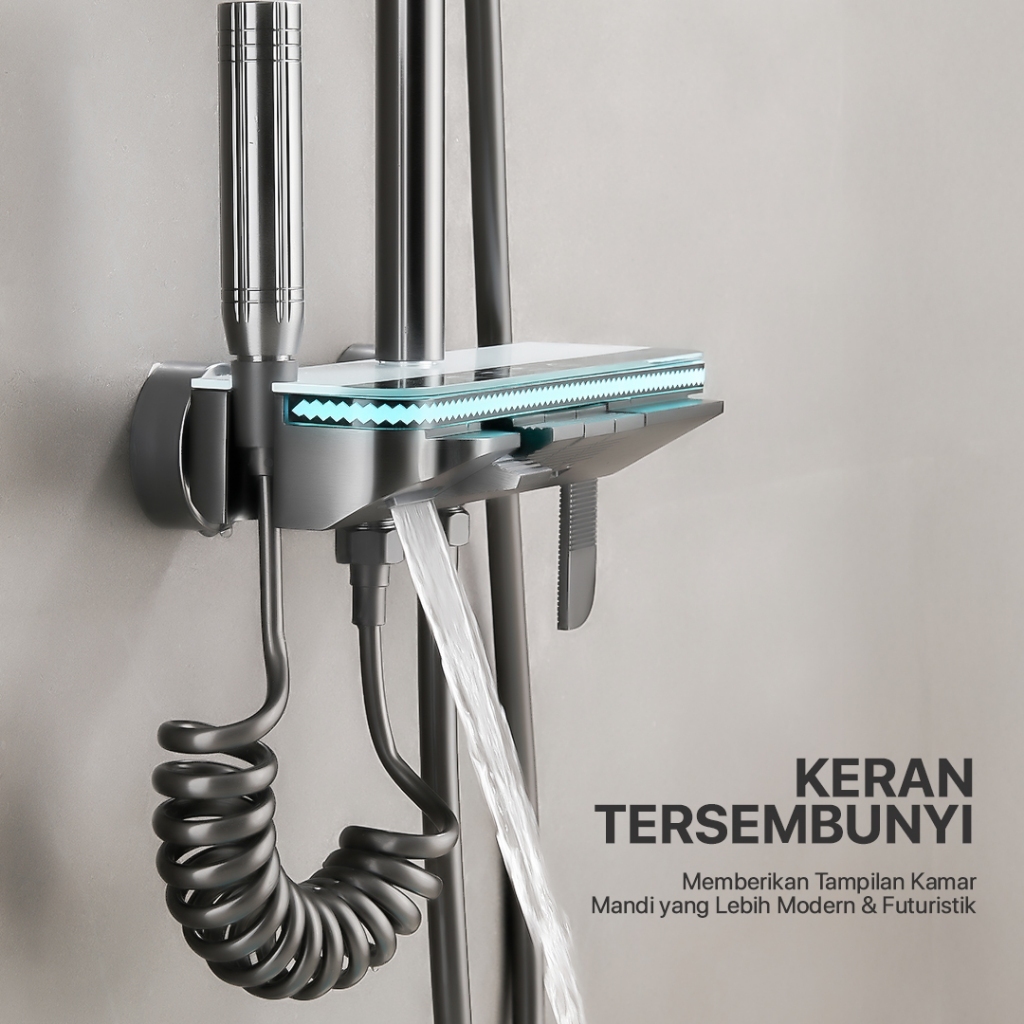 YAJU - 4 in 1 LED Piano Shower Set Kamar Mandi Panas Dingin Abu Gunmetal #YJ9058
