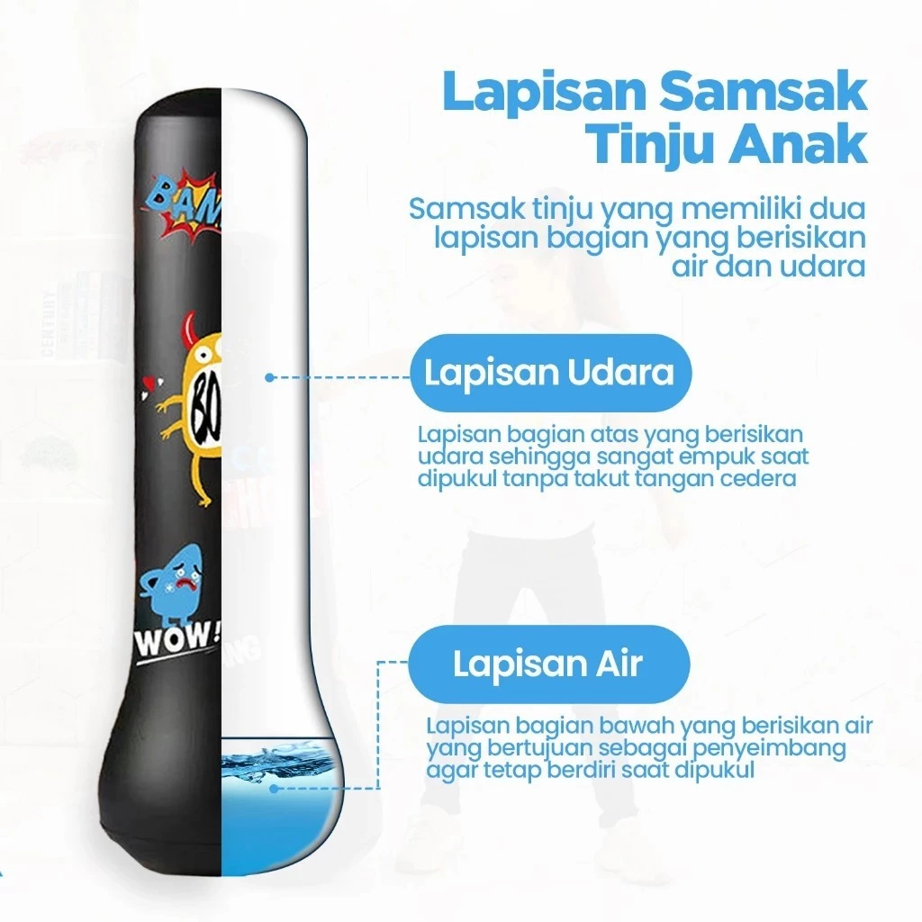120cm Standing Boxing Samsak Tinju Anak Inflatable Kids Training Target Tinju untuk menghilangkan stres Non Pompa