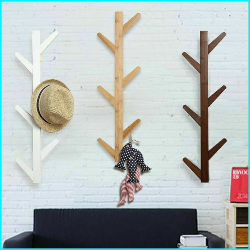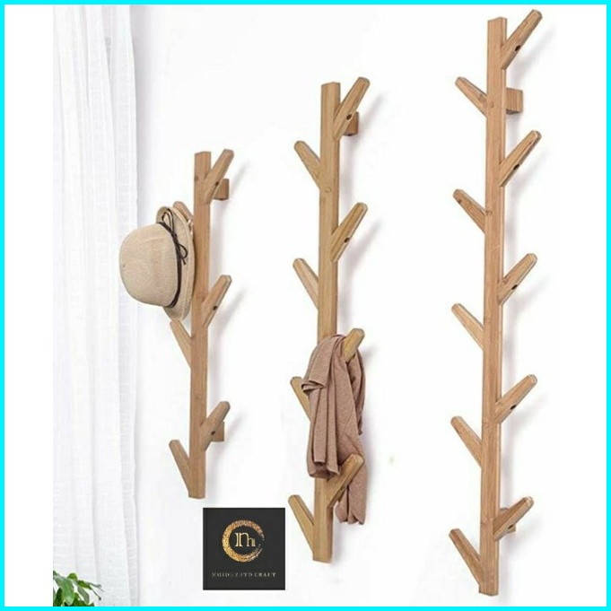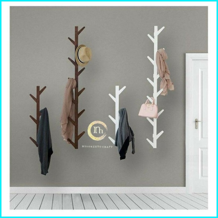 Gantungan Baju Dinding Hanger Kayu Holder Topi Handuk Baju