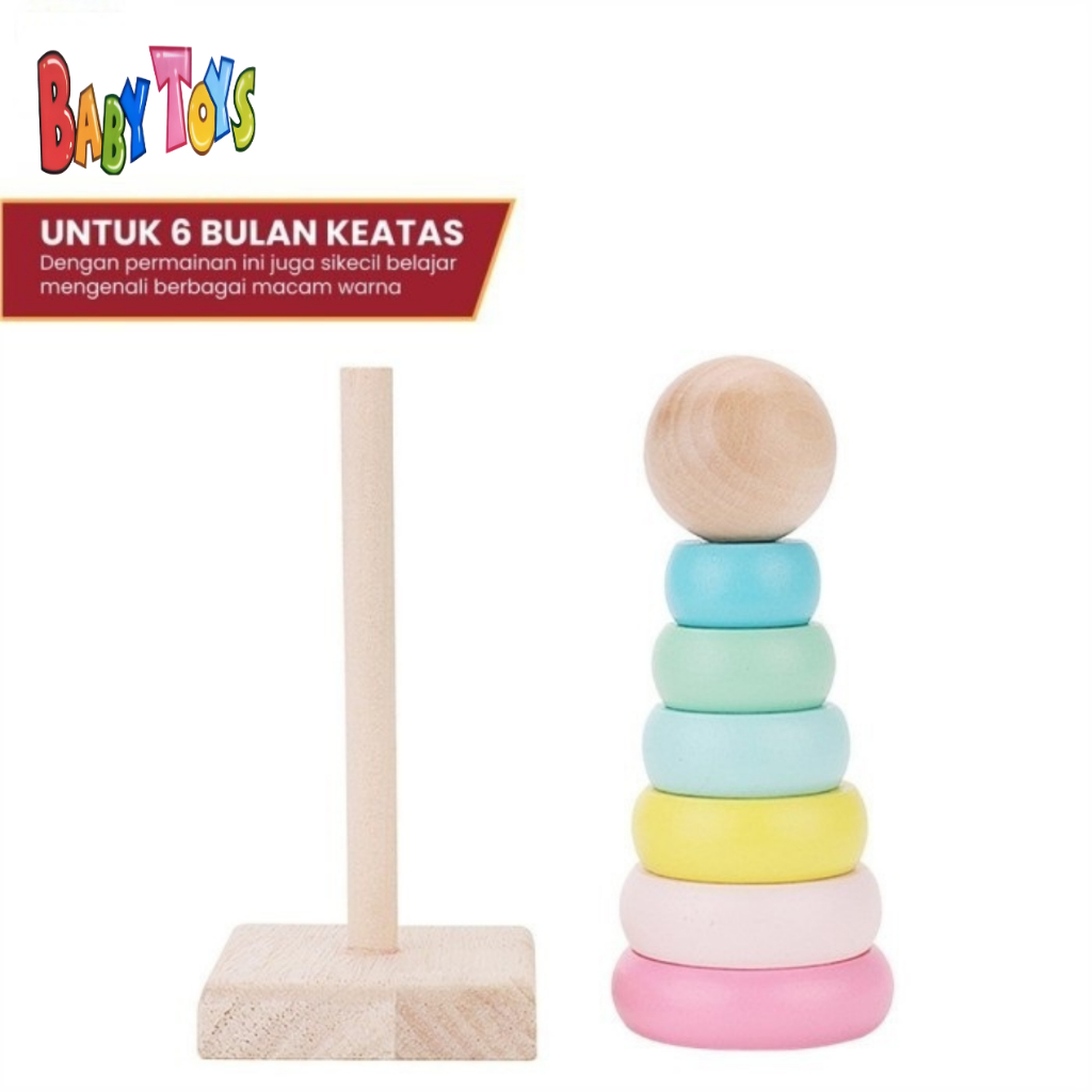 Mainan Anak Donat Susun Kayu Edukasi