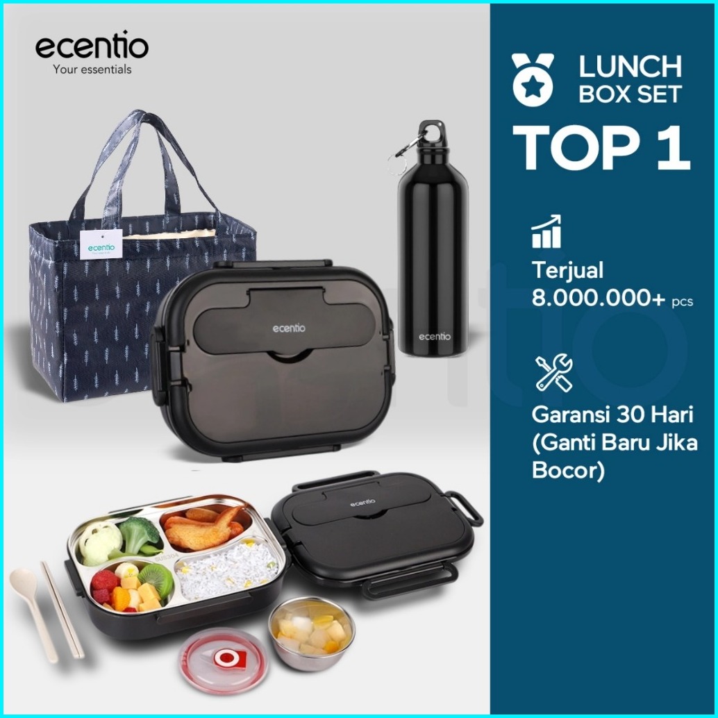 Buy 1 Get 3ecentio Lunch Box 1000ml Stainless 304 Sekat 4 Dan Anti Tumpah Free Sendok Sumpit