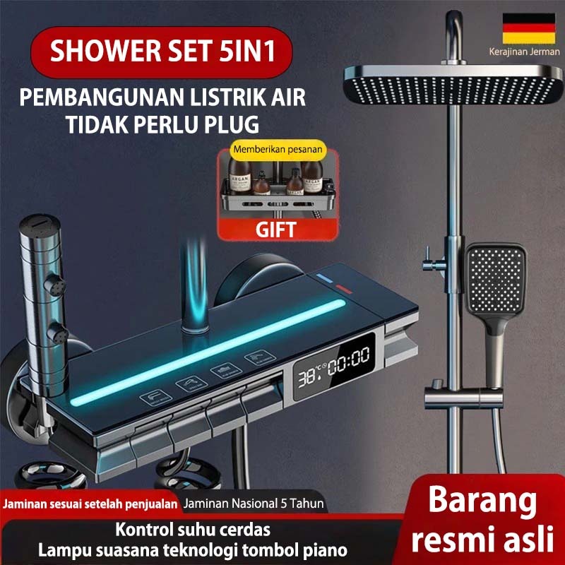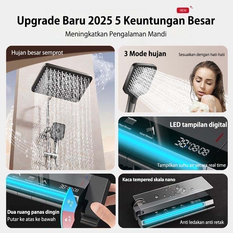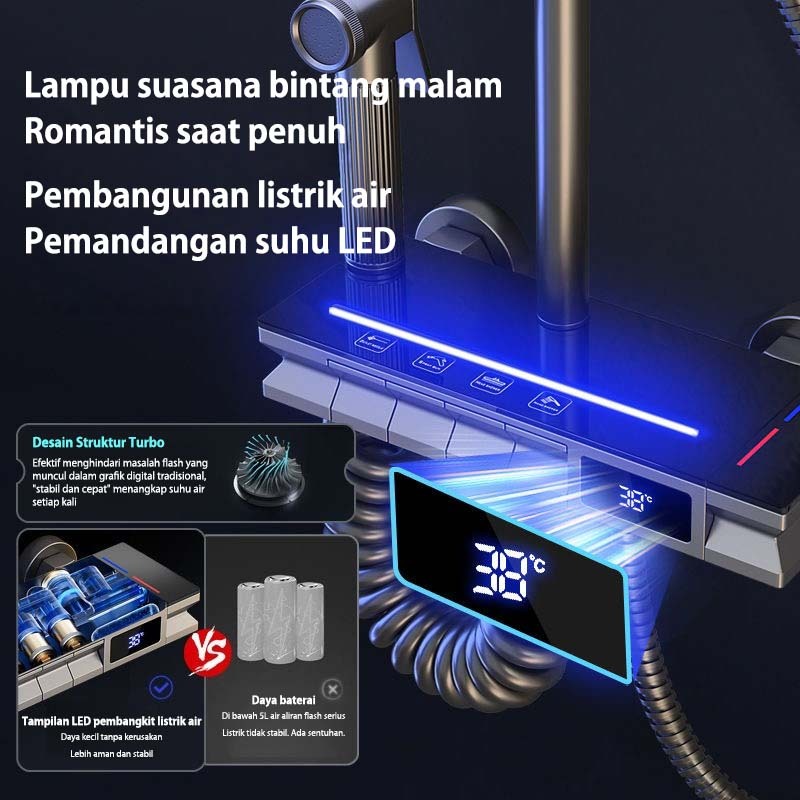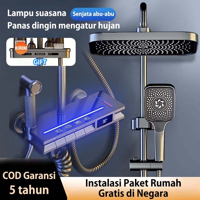 5 Dalam 1 LED Smart Shower Display Piano Keys Shower Kamar Mandi Set/Shower Tiang Set Panas-Dingin