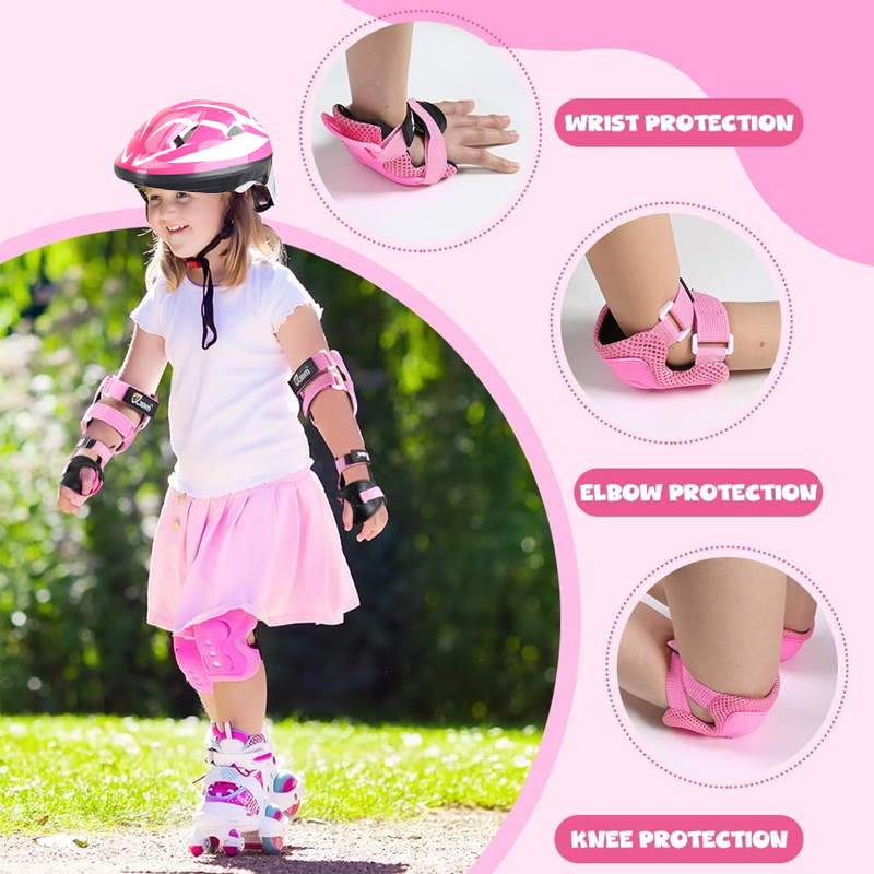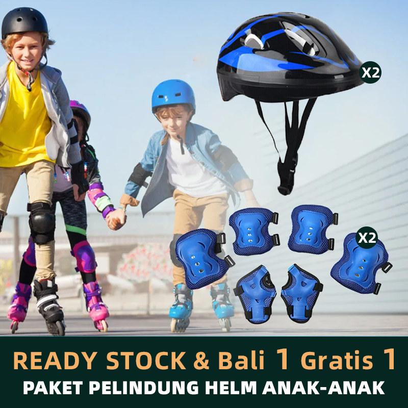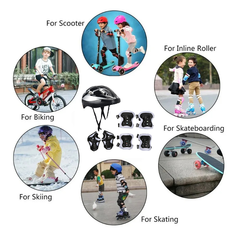 【Garansi 30 tahun】Set Pelindung Keselamatan Anak 7 PCS | Helm, Deker Tangan (2), Decker Lutut (2), Pelindung Tangan (2)