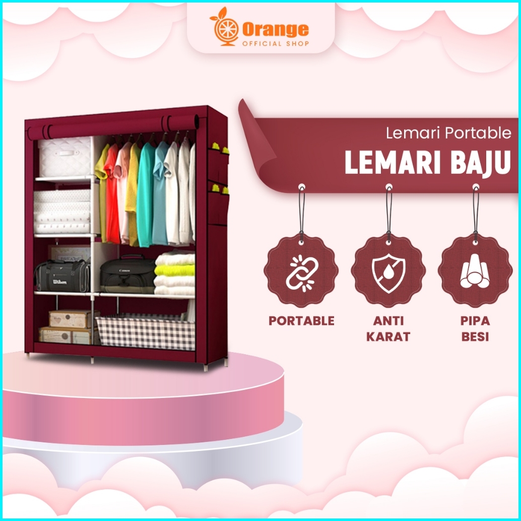 Lemari Baju Lemari Portable Lemari Kain Di Gulung Ke Atas Lemari Polos Serbaguna 105nt