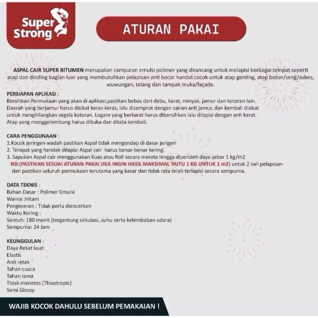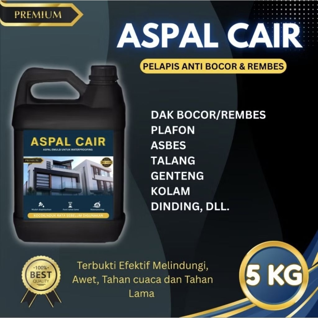 (PREMIUM QUALITY) Aspal Cair 5 kg+ paket gratis! kain fiber glass waterproofing+kuas&sarung tangan) (formula baru ampuh