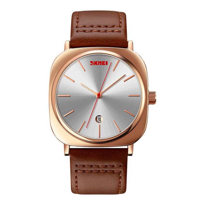 Jam Tangan Pria SKMEI 9266RGSI Men Silver Dial Brown Leather Strap Jamtangan Analog Skmei SKMEI Jam Tangan Analog SKMEI