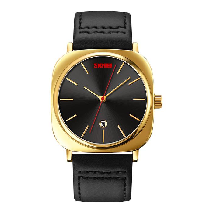 Jam Tangan Pria SKMEI 9266GDBK Men Black Dial Black Leather Strap Jamtangan Analog Skmei SKMEI Jam Tangan Analog SKMEI T