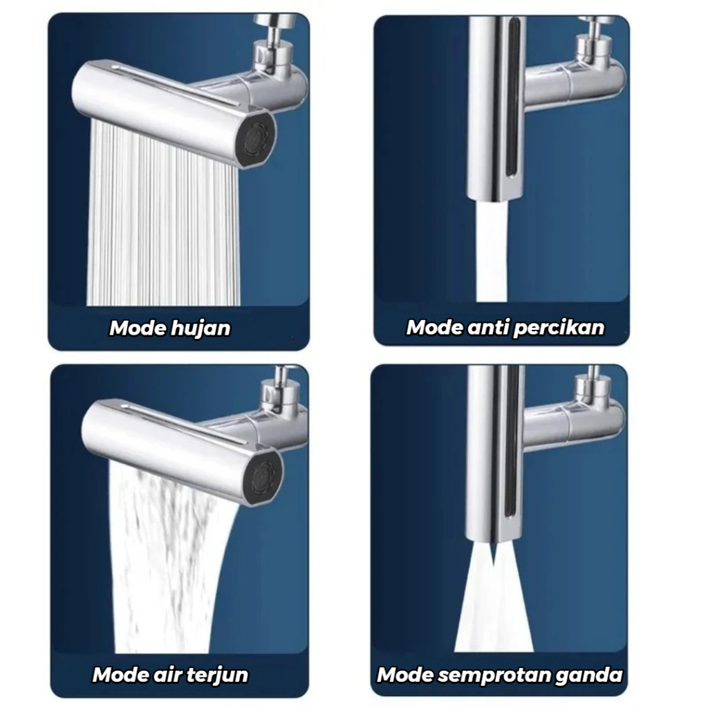 SUS 304 Keran Air Terjun 4 Mode Keran Wastafel Dapur Multifungsi Kran Sink Dapur 360 ° Rotasi Wastafel / Tembok Kran Ang