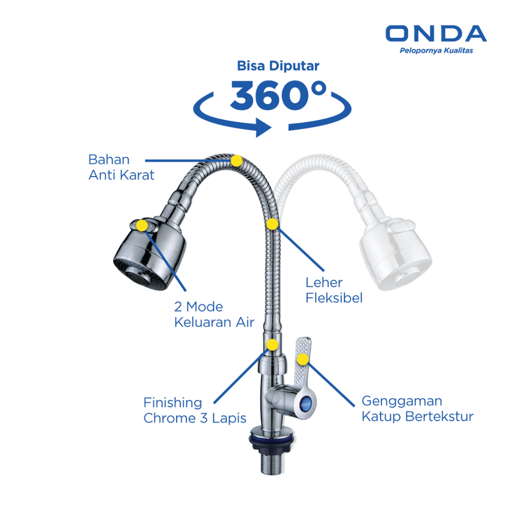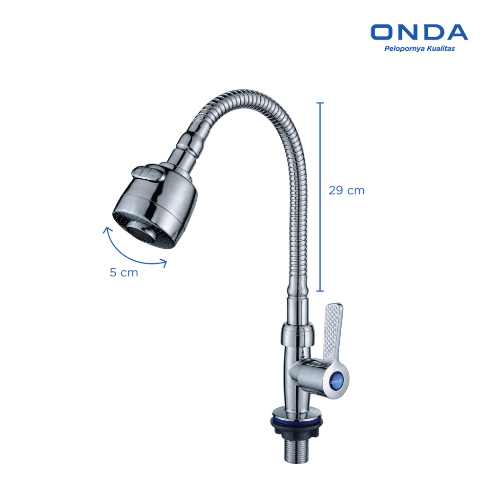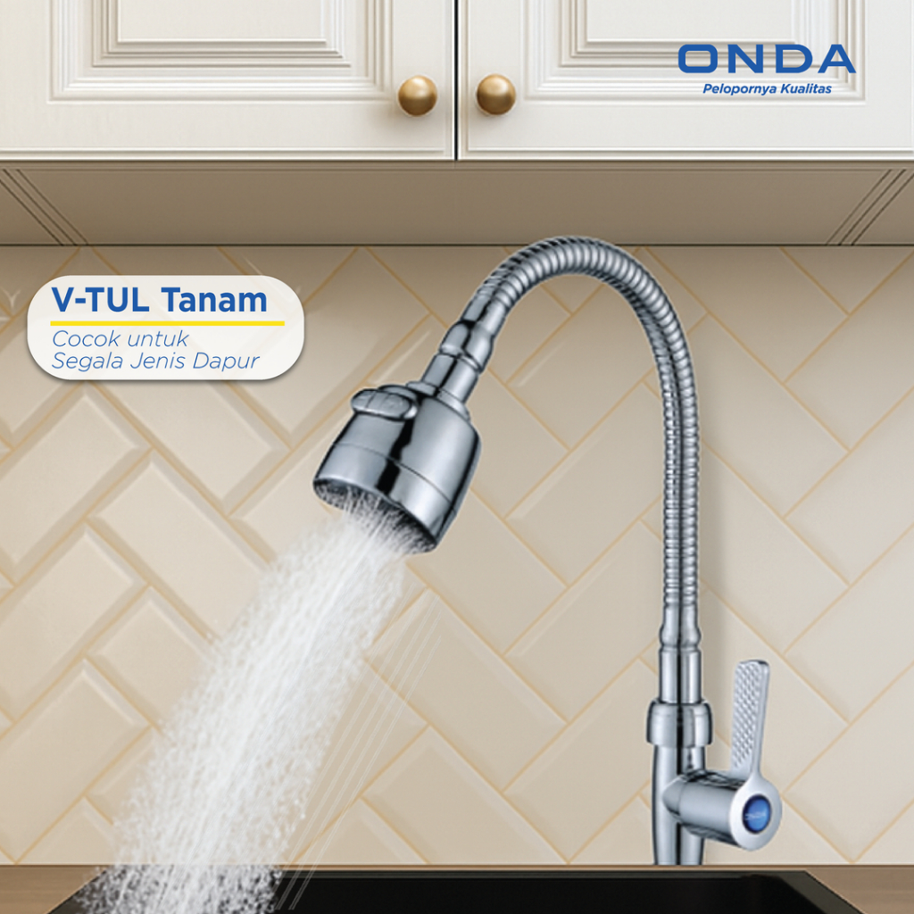 ONDA Kran Wastafel Cuci Piring V-TUL FLEXI Tembok 1/2 In Keran Dapur Leher Angsa Fleksibel