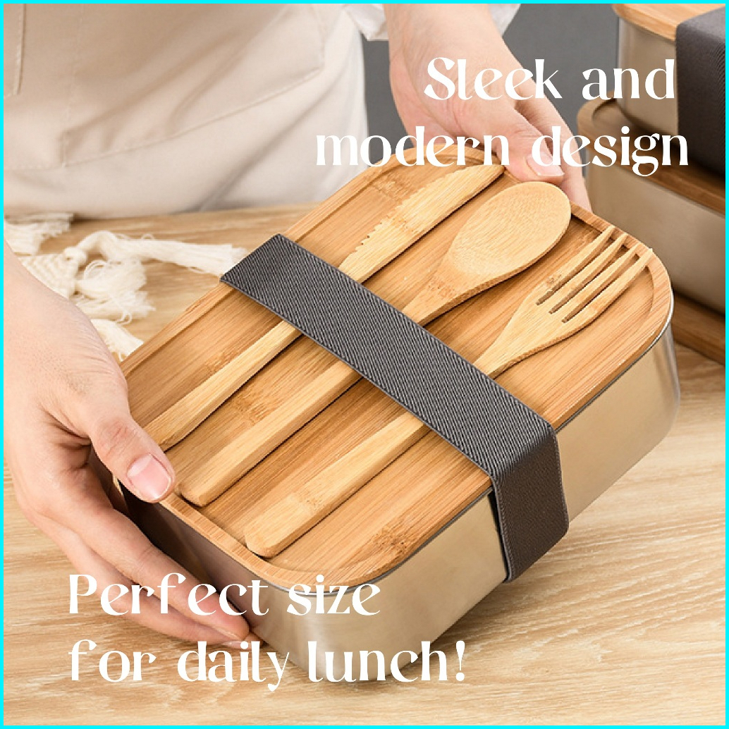 Kotak Makan Anak Sekat 3 Tec Kotta Bento Box Kotak Makan Stainless Steel 304 Berkualitas Tutup Kayu Kotak Penyimpanan Ma