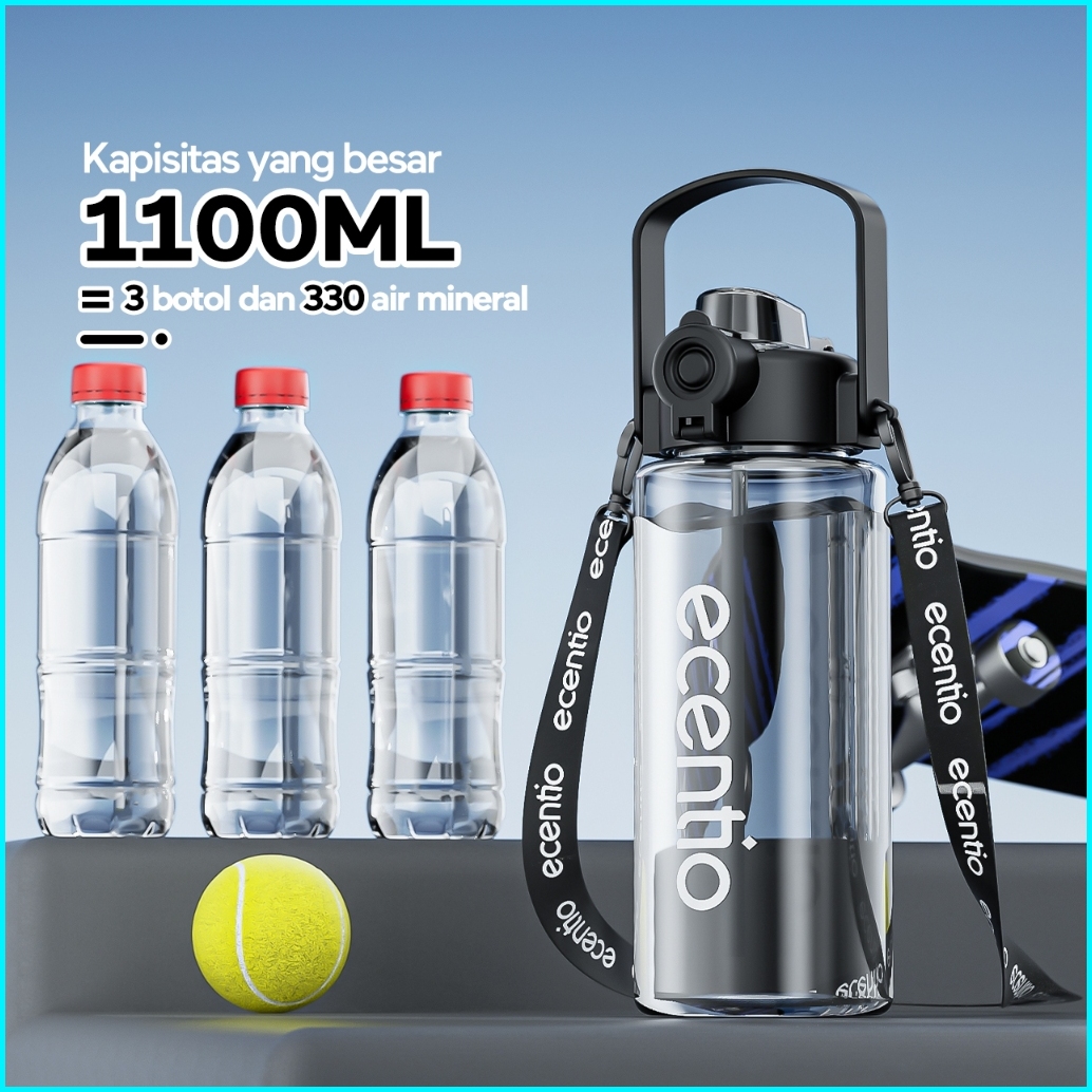 Ecentio Botol Plastik 1100ml Botol Minum Besar Botol Minum Olahraga Sport Botol Minum Anak Cowok
