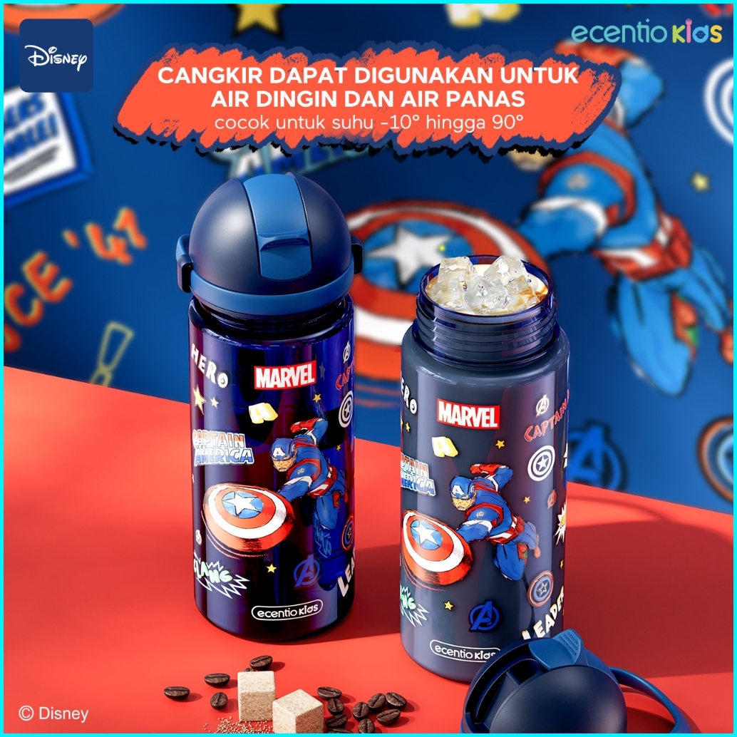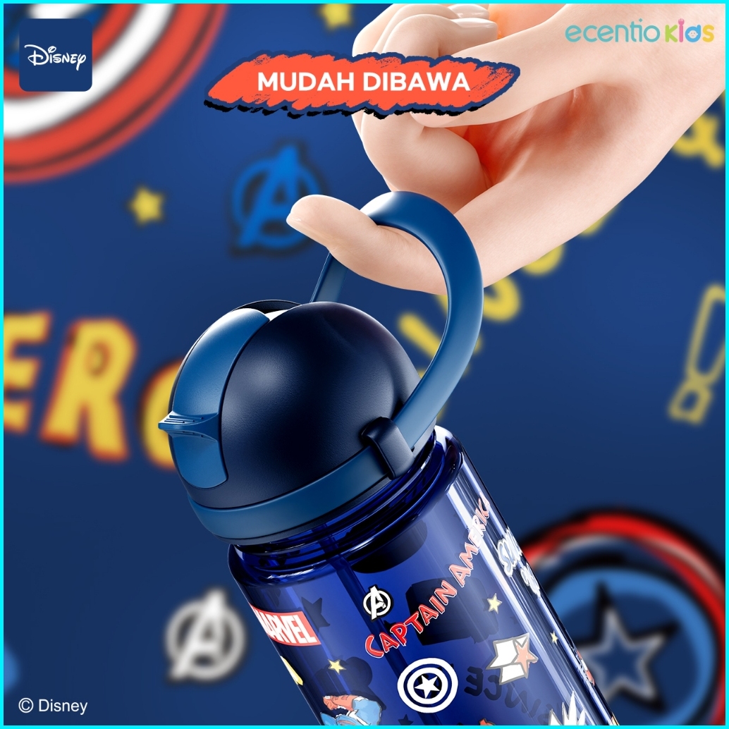 Ecentiokids 550ml Botol Anak Bpa Free Dengan Sedotan Tahan Panas Hingga 90 Seri Disney