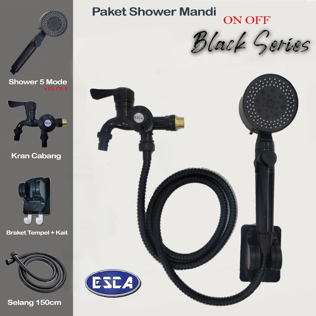 ESCA 39 Shower Mandi Hitam 5 Mode Komplit Kran