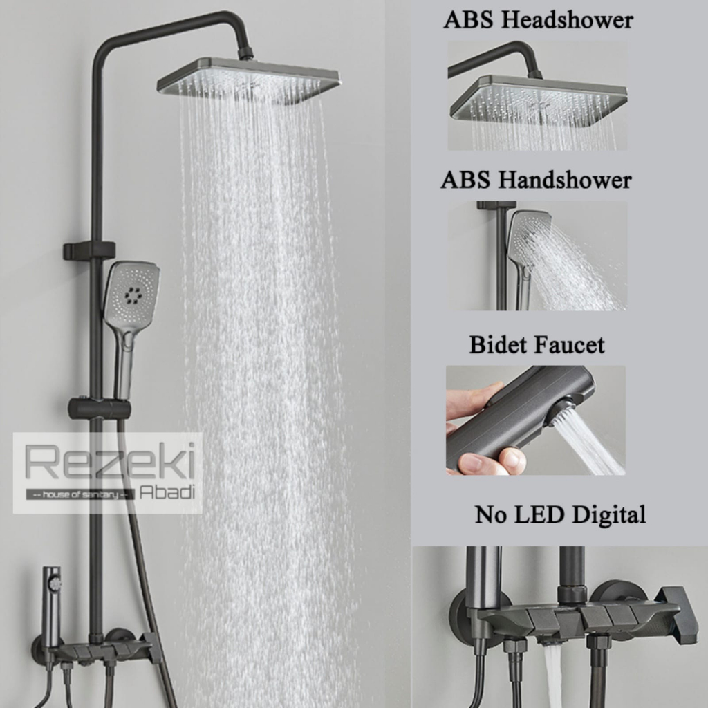 Shower Column Set Pianokey Stainless / Kran Panas Dingin 4 Way / Shower Panas Dingin