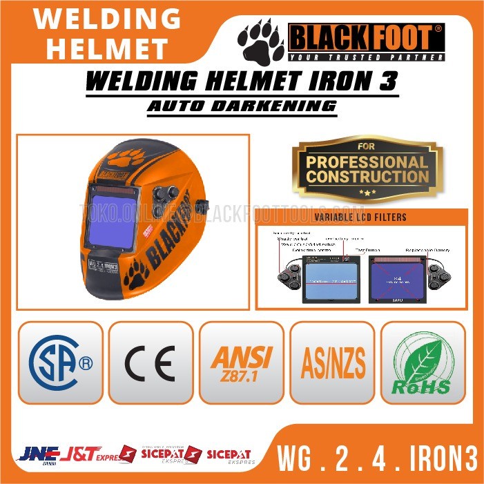 Helm Las Otomatis IRON 3 BLACKFOOT Auto Dark Topeng Kedok Safety Welding WG.2.4.IRON3