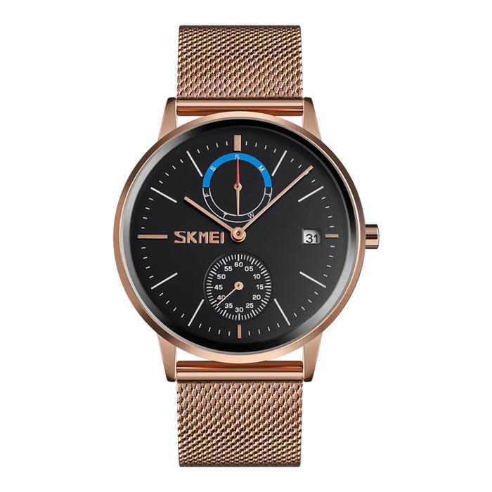 Jam Tangan Pria SKMEI 9182RG Men Multifunction Black Dial Rose Gold Mesh Strap Jamtangan Analog Skmei SKMEI Jam Tangan A
