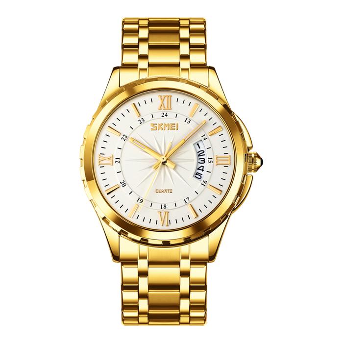 Jam Tangan Pria SKMEI 9069GDWT Men Analog White Dial Gold Stainless Steel Strap Jamtangan Analog Skmei SKMEI Jam Tangan