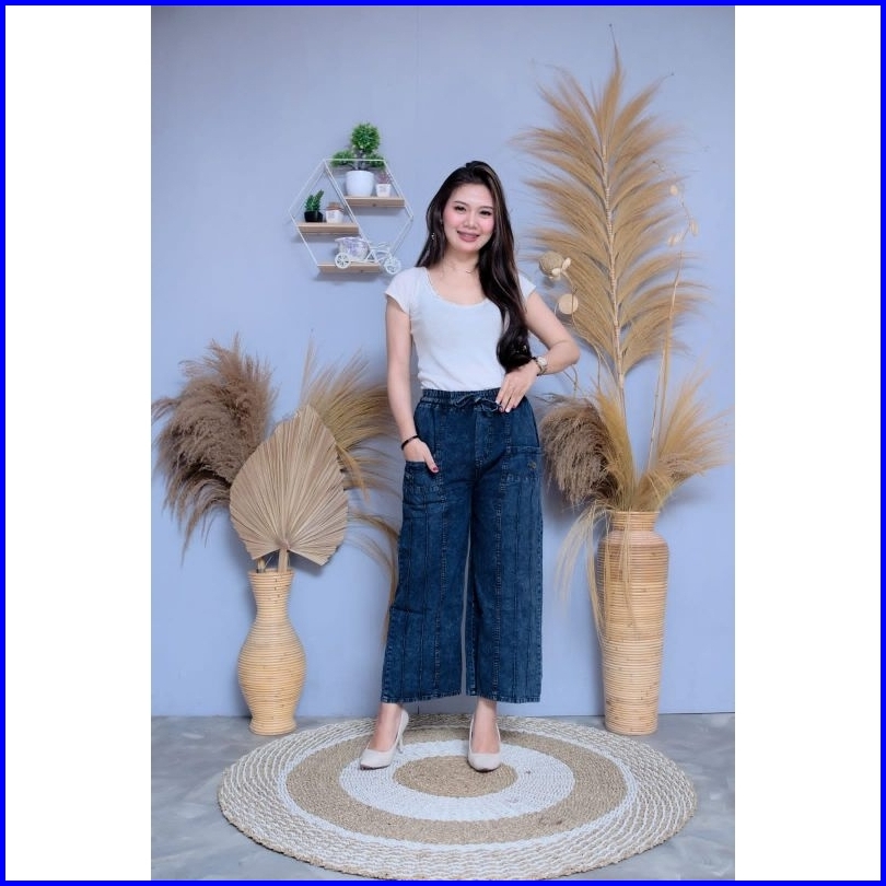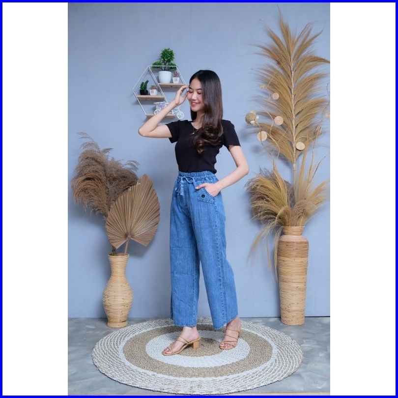 Rena Highwaist Celana Kulot Jeans Kantong Depan
