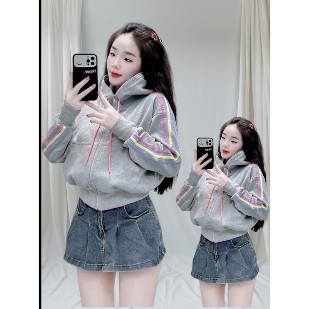 Vallina Outfit - Puel Zip Hoodie Outerwear Jaket Zipper Wanita Semi Crop Fleece Premium Korean Style