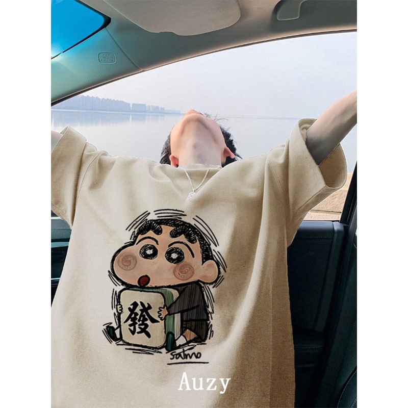 AUZY Jepang Mahjong Kartun pencetakan kaos pria wanita atasan Lengan Pendek T-shirt skena baju oversize t shirt distro original 100 PERSEN