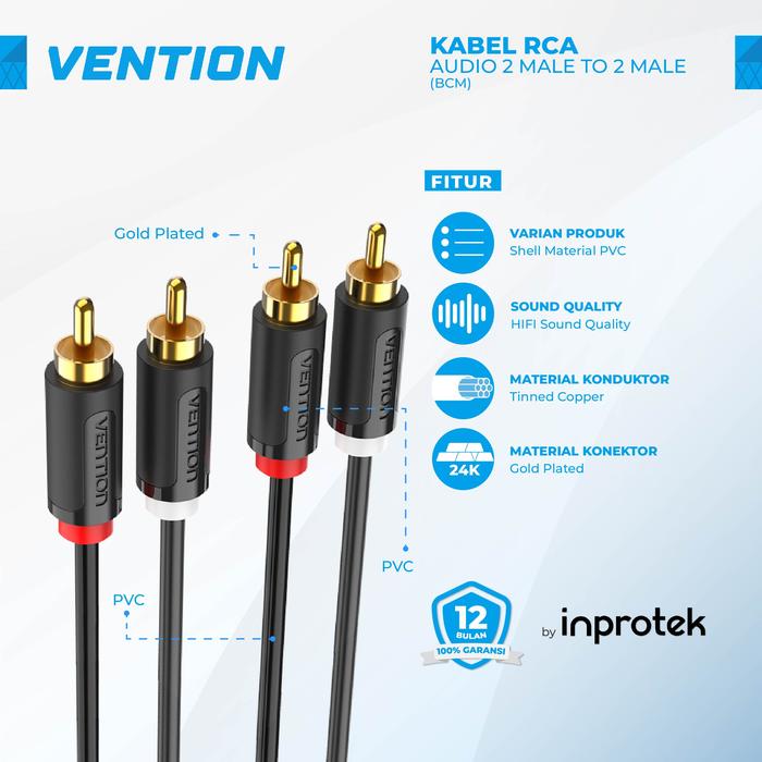VENTION KABEL RCA AUDIO 2 MALE TO 2 MALE - BCU - GREEN, 0.5 METER