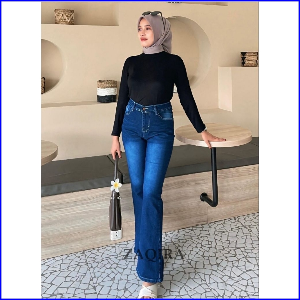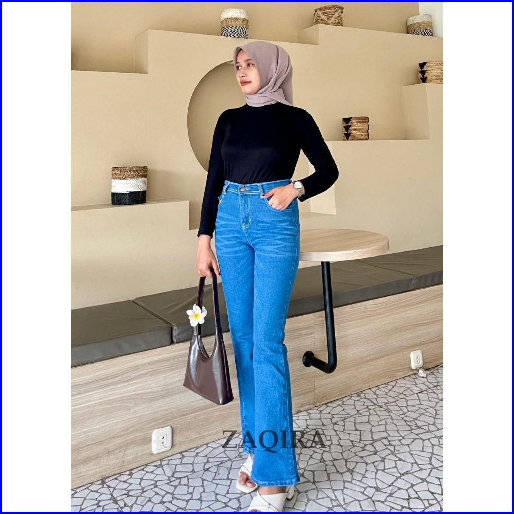 Hightwaist Cutbray Jeans Retro Wash Wanita Premium