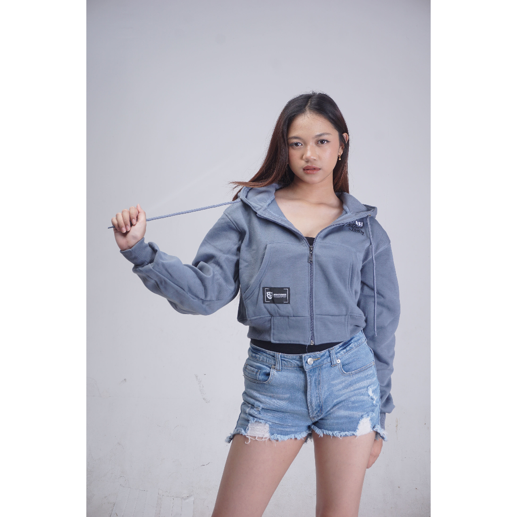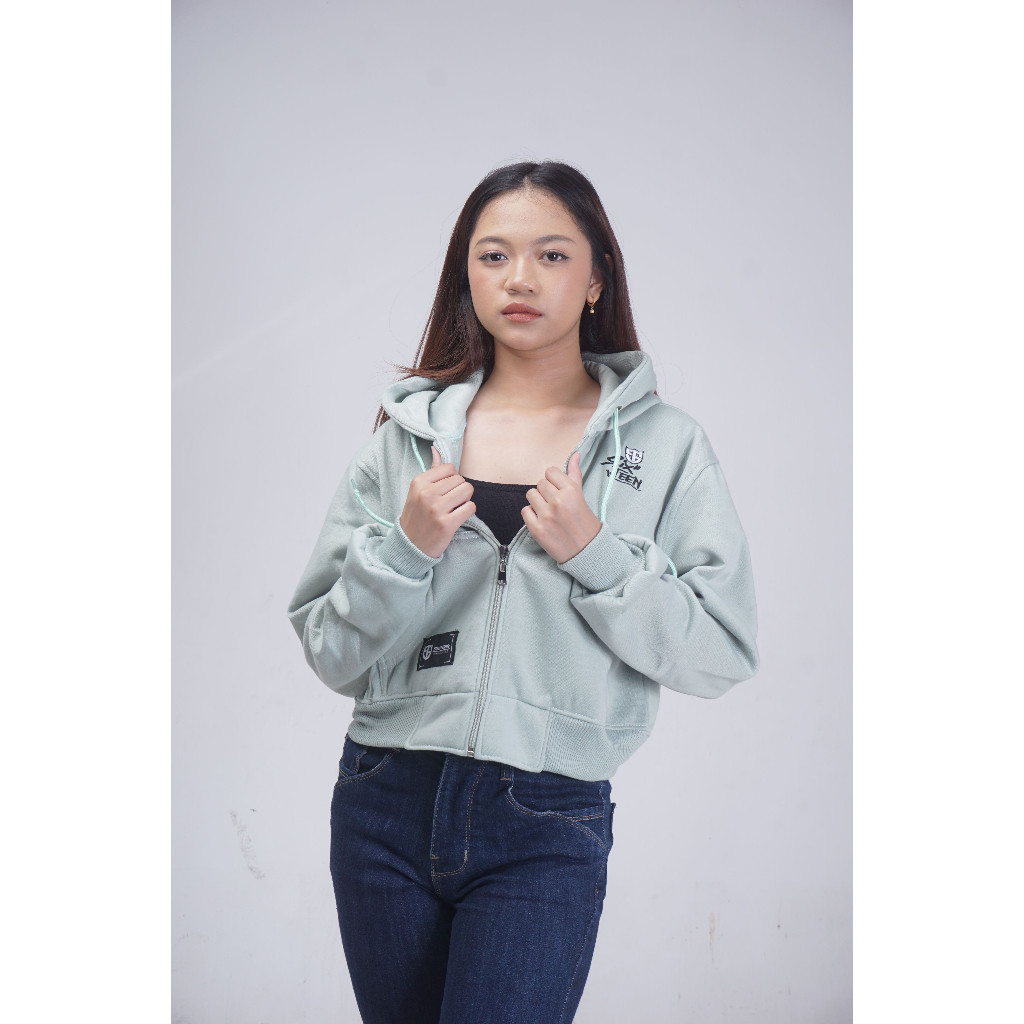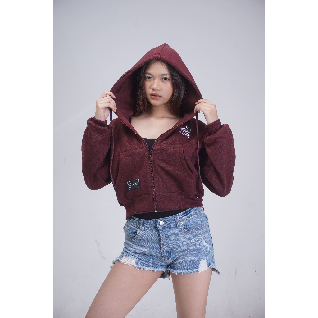 SIXTEEN HOODIE SWEATER ZIPPER CROP T0P WANITA