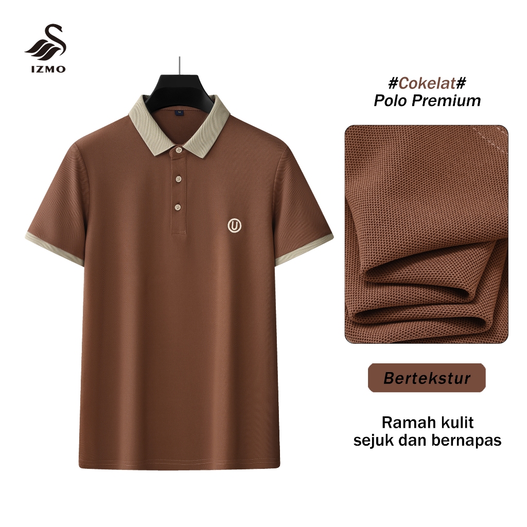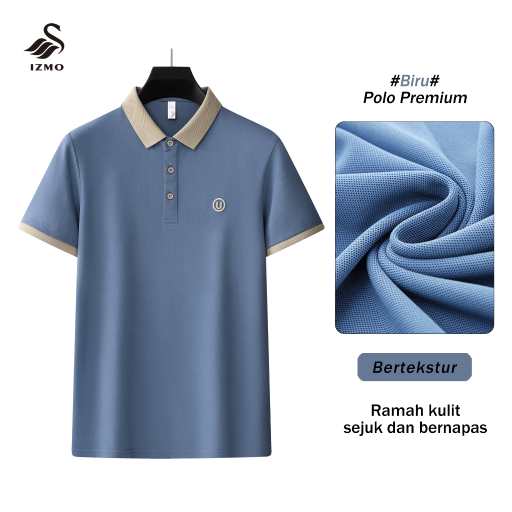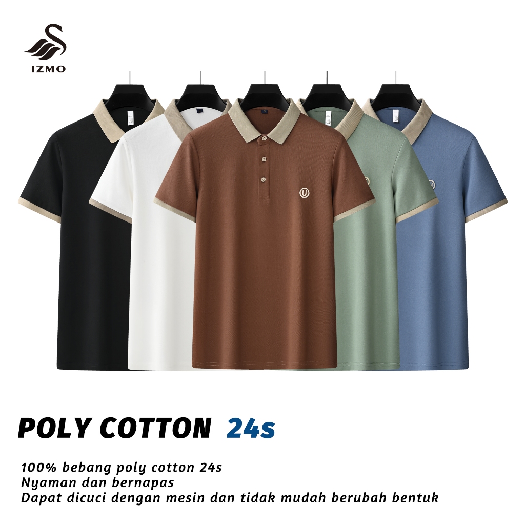 IZMO Huruf U Polo Shirt Polo Shirt Pria Kaos Oversize Pria Kaos Kerah Kaos Seragaman