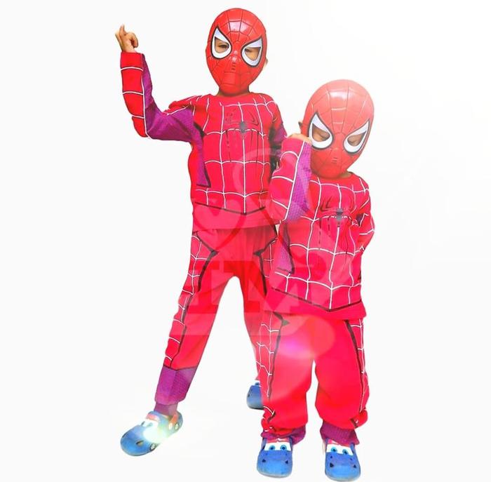 Baju Kostum Spiderman + Topeng Superhero / Baju topeng spiderman / Setelan Baju + Topeng / Baju Anak Cowok