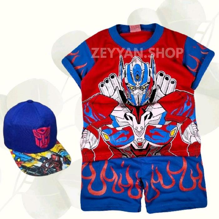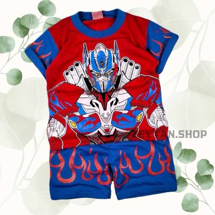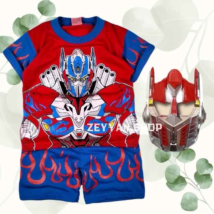 BAJU ANAK LAKI LAKI MOTIF SUPERHERO TRANSFORMER ADA TOPENG UNTUK UMUR 1-10 TAHUN KATUN
