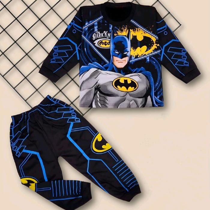 Baju setelan batman lengan panjang dan pendek bisa tambah topeng untuk usia 1-10 tahun Katun
