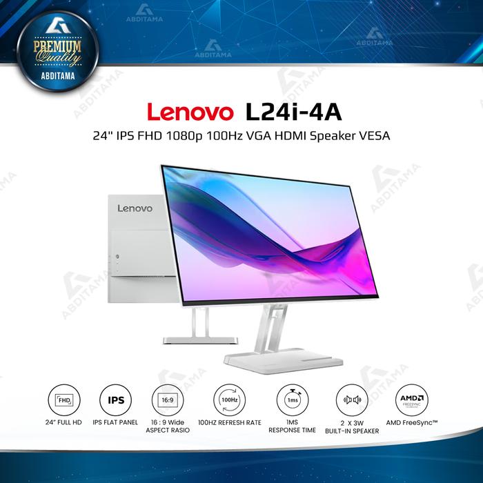 Monitor LED Lenovo L24i-4A 24" IPS FHD 1080p 100Hz VGA HDMI Speaker VESA Silver Coud Grey - L24i-4A Seller