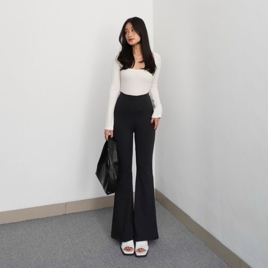 Celana Fit And Flare Pants Celana Cutbray Wanita Scuba Jumbo Kantor Kerja Wanita bahan Melar Feminim