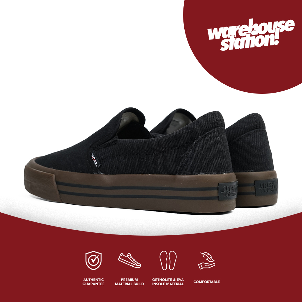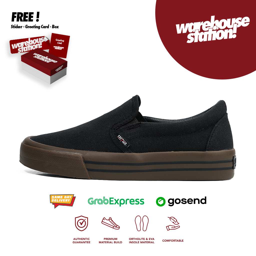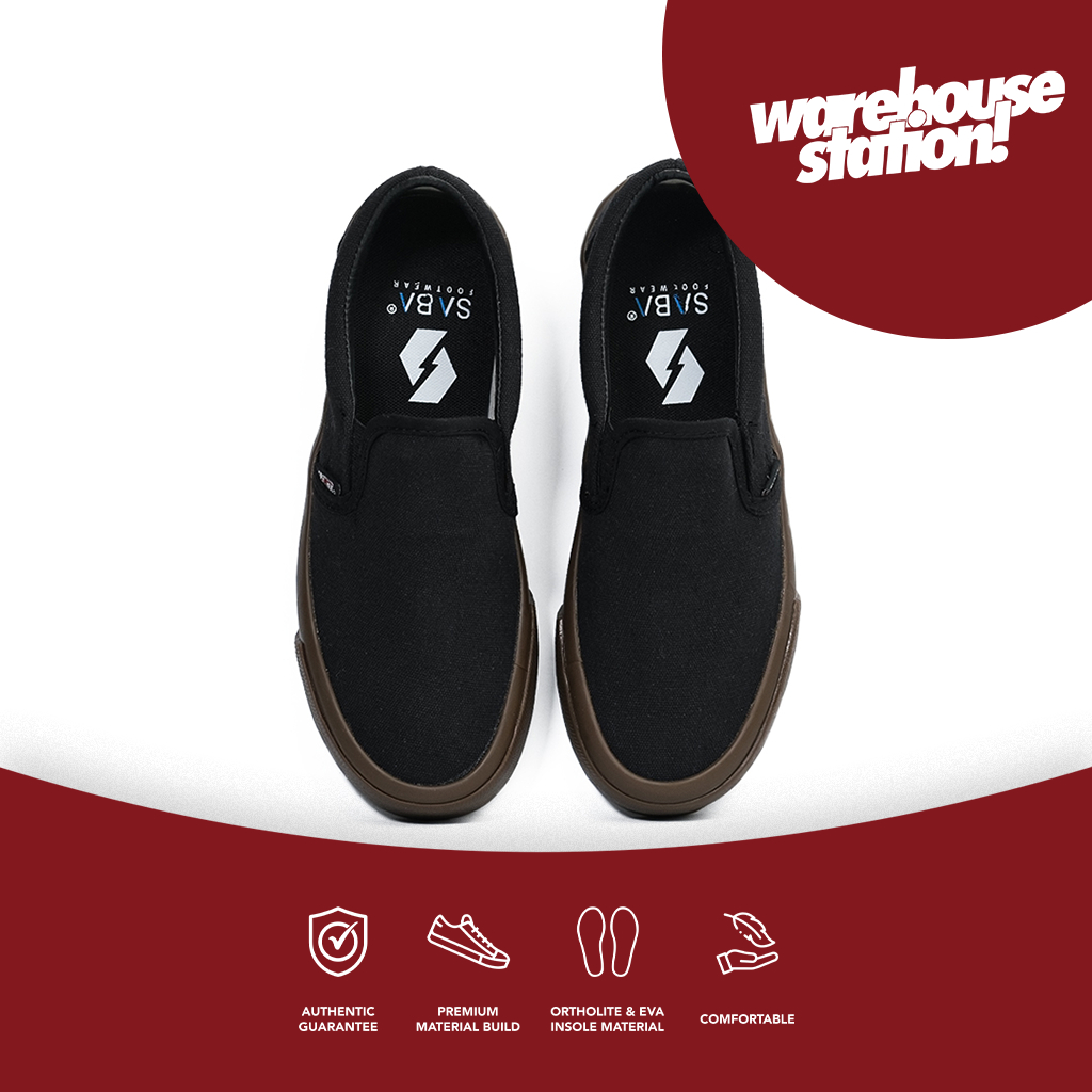 SABA Vintage Slip On ALL Black Dark Gum LX - Sepatu Sneakers Casual Pria Wanita
