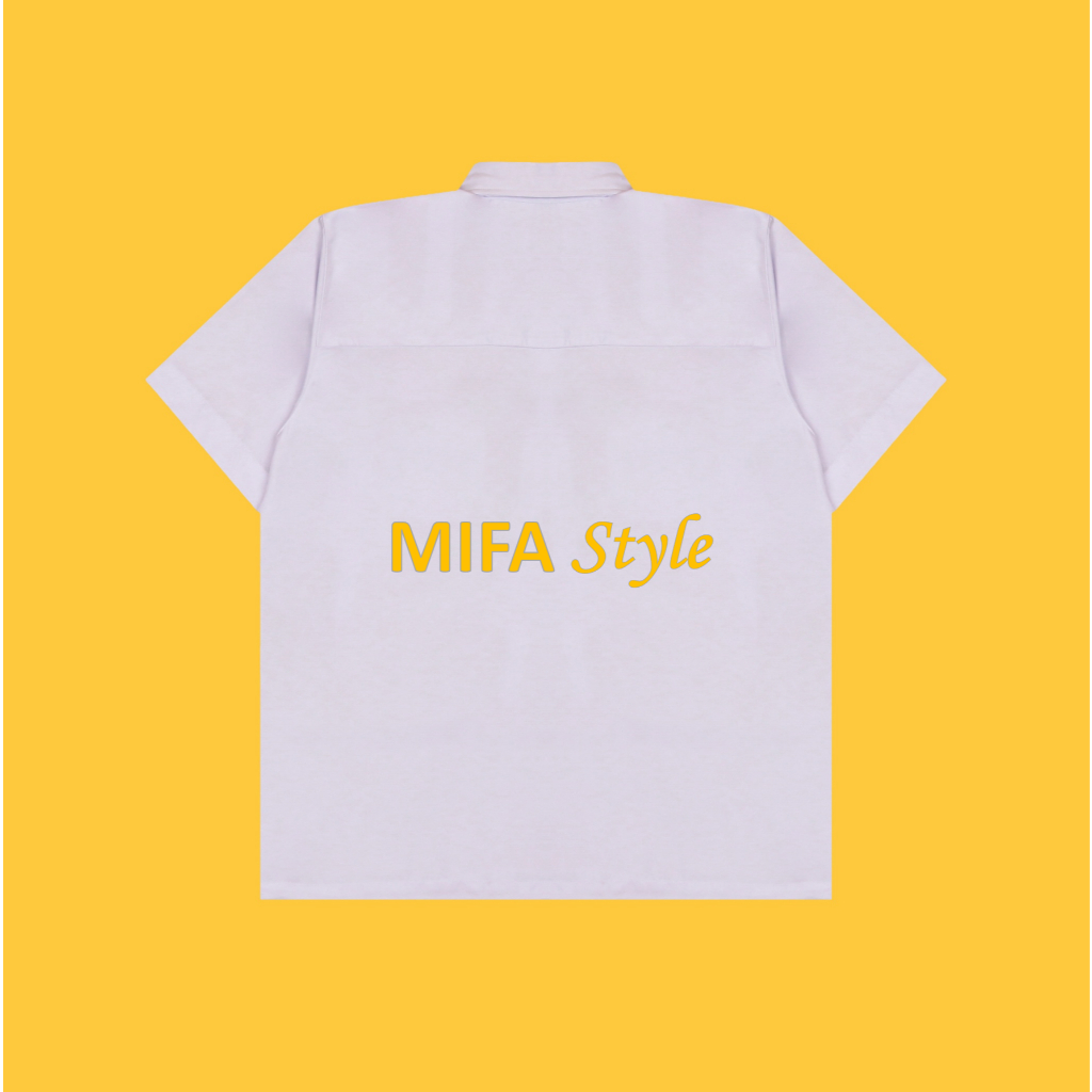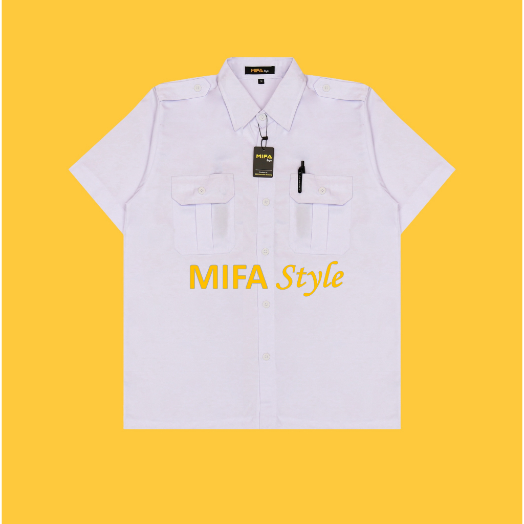 MIFA Baju Dinas Putih Pria Lengan Pendek Seragam PNS Putih Pria Kemeja PDH Putih PNS Pria Krah Hitam