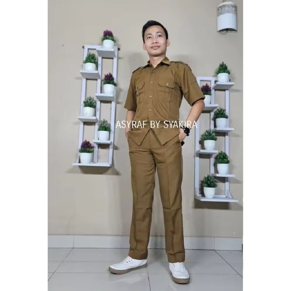 Seragam PDH Pria PNS ASN Pegawai Lengan Pendek Setelan Celana Ukuran S - M - L - XL - XXL - 4L