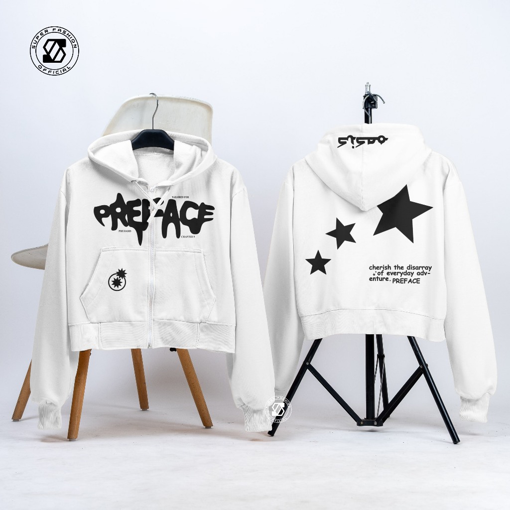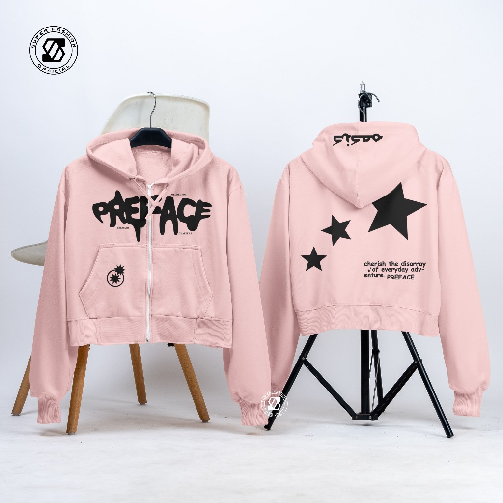 SS - Hoodie Crop & Reguler Wanita dan Pria PREFACE STAR OF EVERYDAY Zipper Streetwear Style Anak Remaja Dewasa Kekinian