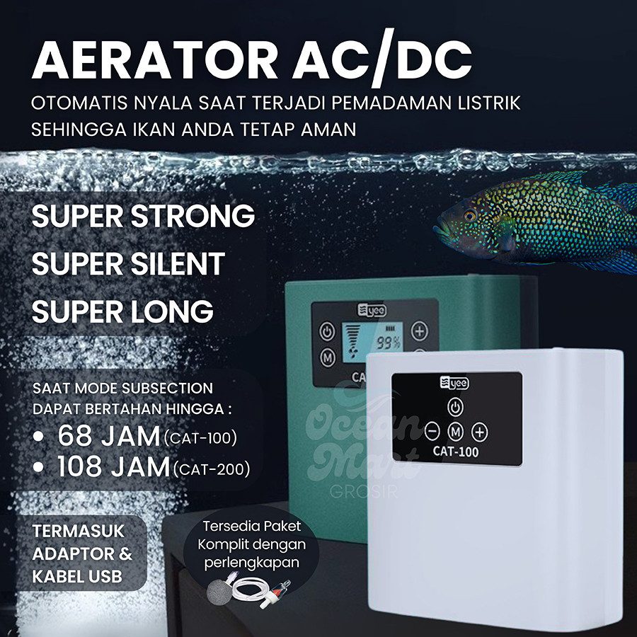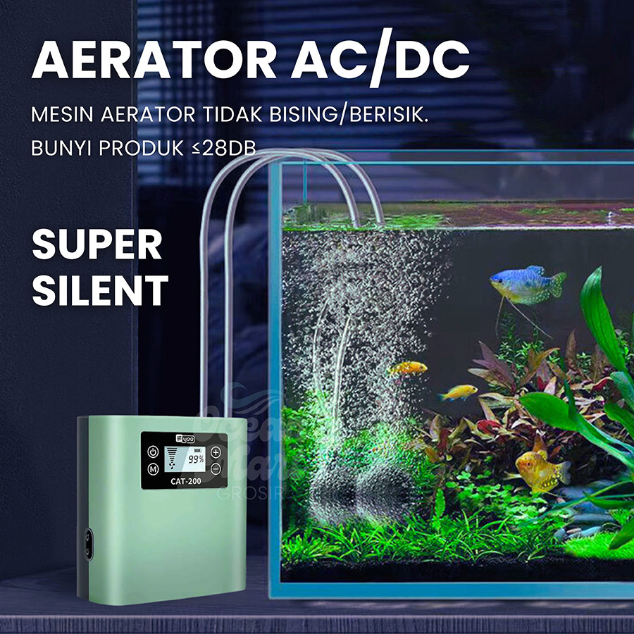 Super Silent Aerator Air Pump AC DC USB Aquarium Pompa Gelembung Udara Airator 2 Lubang Baterai Portable Oksigen Ikan