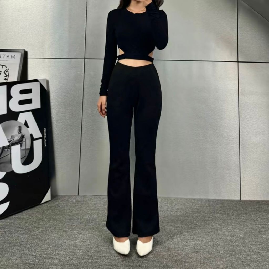 Flare Pants - Highwaist Flare Pants Cutbray - Bahan Rib Knit Stretch Melar Elastis - Cutbray Wanita