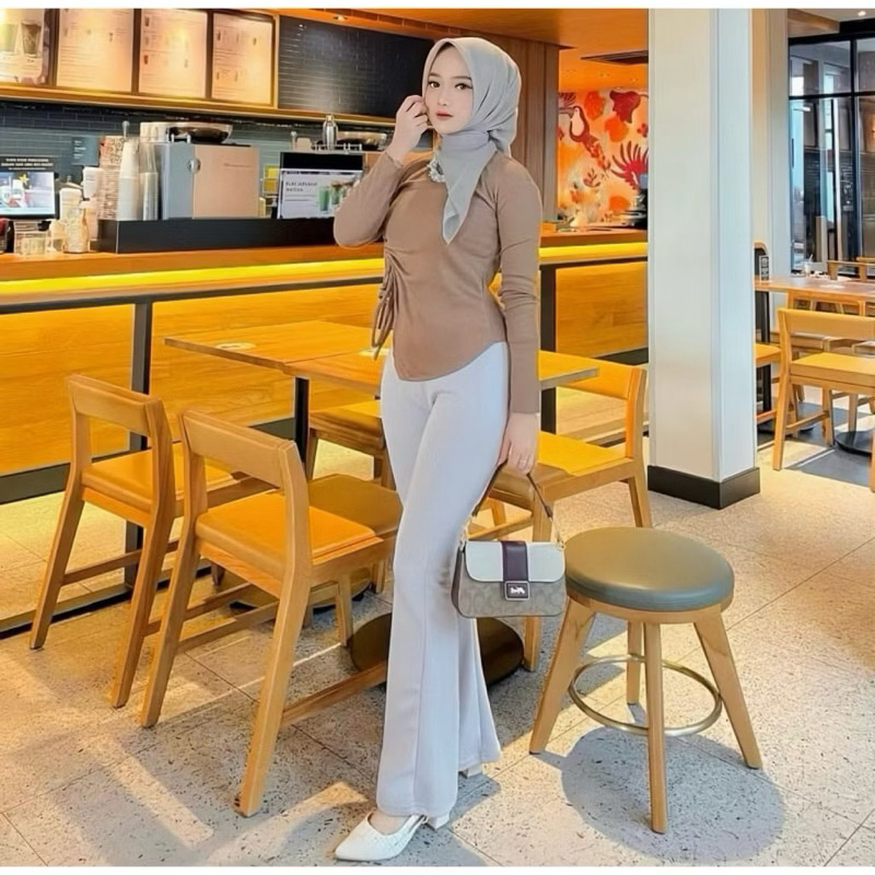 Celana Fit And Flare Pants Cutbray Scuba Streach Pinggang Highwaist Celana Wanita Kekinian