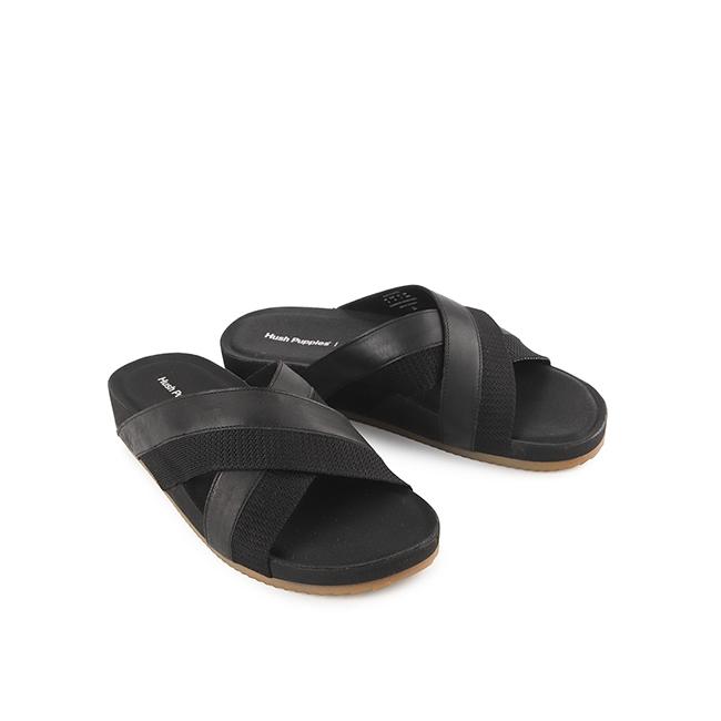 Hush Puppies Sandal Pria Merritt Cross Slide Bold Black Leather