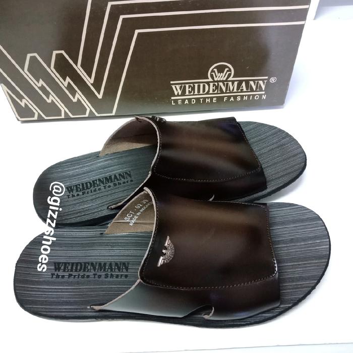 Sandal Slide Pria Weidenmann SCT-02 Coklat Muda Tan Coklat Tua Cowok Laki-laki Kulit Murah