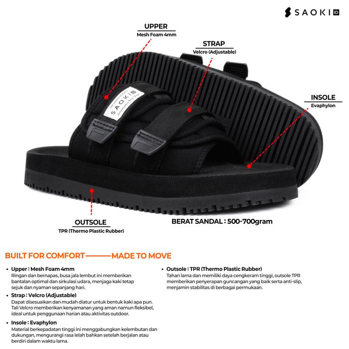 SAOKI - Sandal Slop Pria Wanita Traveling Sendal Casual Slip On Slide Venezia Black