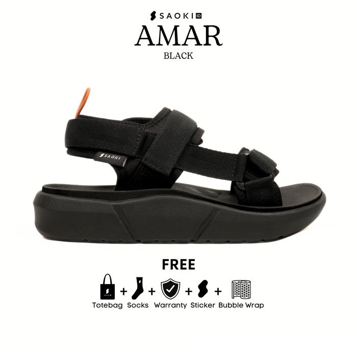 SAOKI - Sandals Traveling Pria Slop Sendal Slip On Wanita Gunung Amar Black