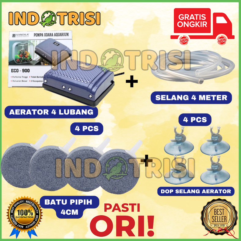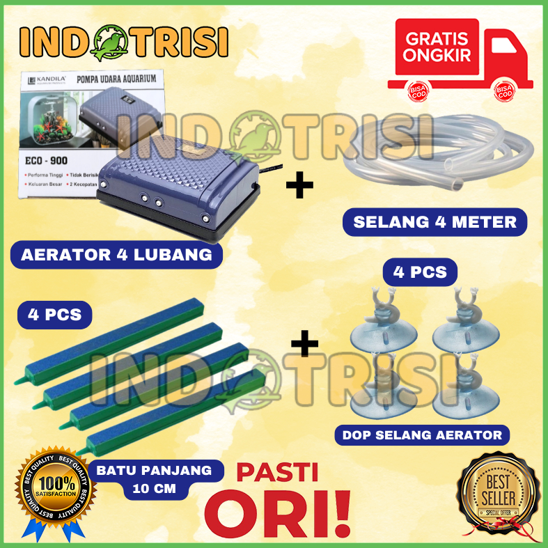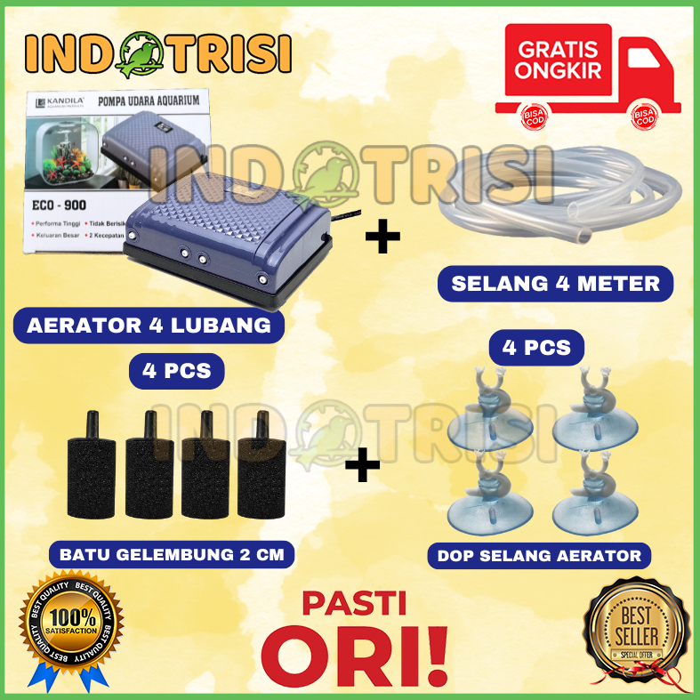 Paket Lengkap Aerator 4 Lubang Kandila ECO 900 Aquascape Aquarium Kolam Gelembung Udara Aquarium