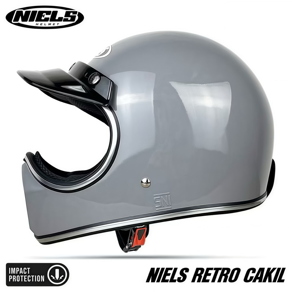 Helm Cakil NIELS Full Face Retro List Chrome Free Pet SNI